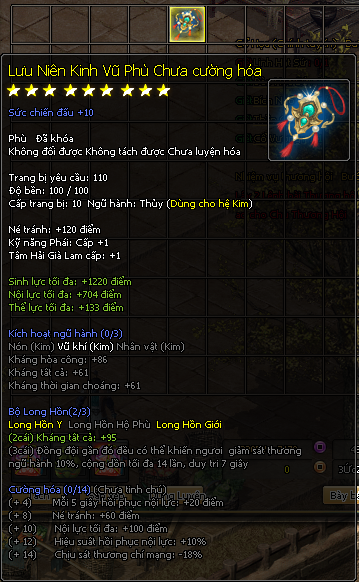 | Lưu Niên Kinh Vũ Phù (Bích Long Anh Hùng)+ 1 kỹ năng (Không khóa, vĩnh viễn) | Không Khóa, Vĩnh Viễn | |