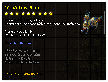 | Thú Cưỡi | Sứ Giả Truy Phong (30 Ngày) | Sứ Giả Truy Phong (30 Ngày) | Sứ Giả Truy Phong (30 Ngày) |