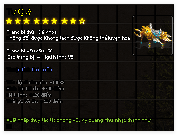 | Thú Cưỡi | Sứ Giả Truy Phong (30 Ngày) | Sứ Giả Truy Phong (30 Ngày) | Tự Quỳ (30 Ngày) |