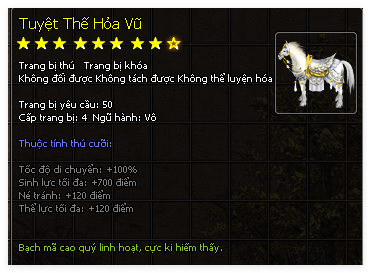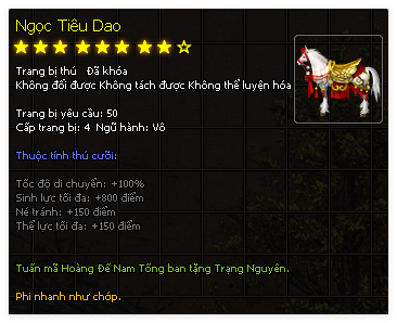 | Thú Cưỡi | Tuyệt Thế Hỏa Vũ (60 Ngày) | Ngọc Tiêu Dao (60 Ngày) |